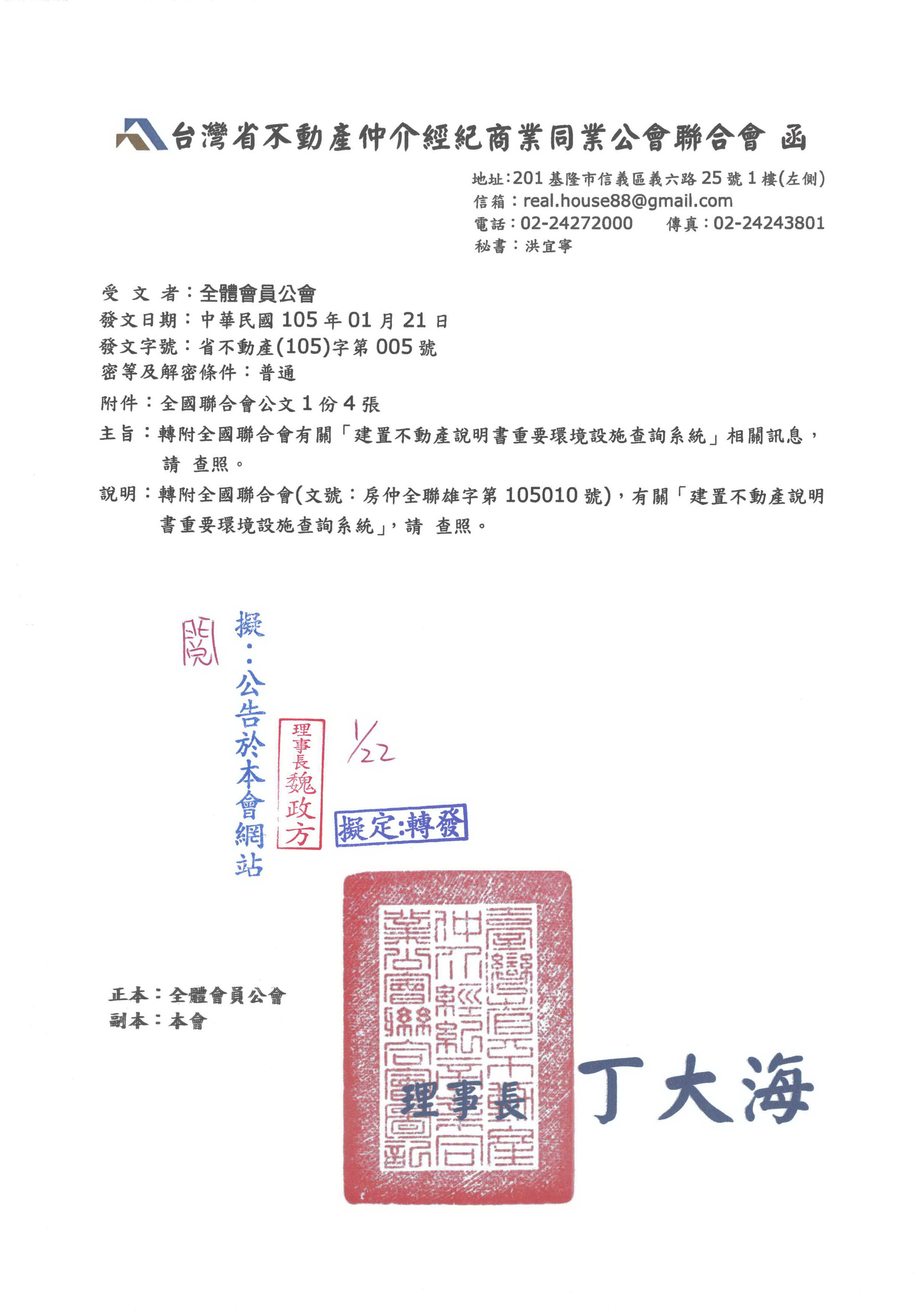 檔案下載(1050121(005)全體會員公會-轉附全國聯合會有關「建置不動產說明書重要環境設施查詢系統」-附件.doc)