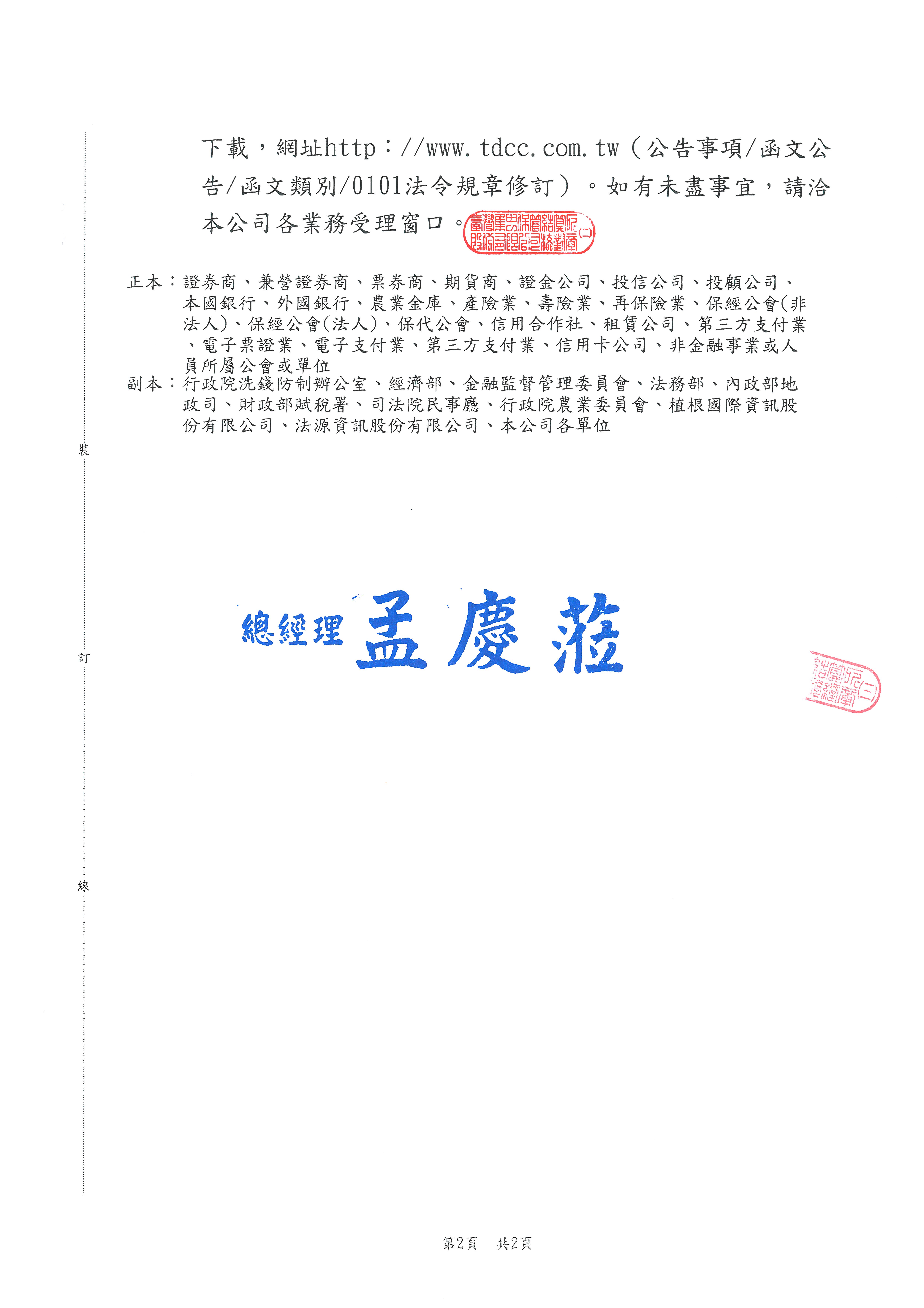 » 函轉台灣集中保管結算所股份有限公司公告公司負責人及主要股東資訊查詢作業要點,自即日起施行,敬請查照