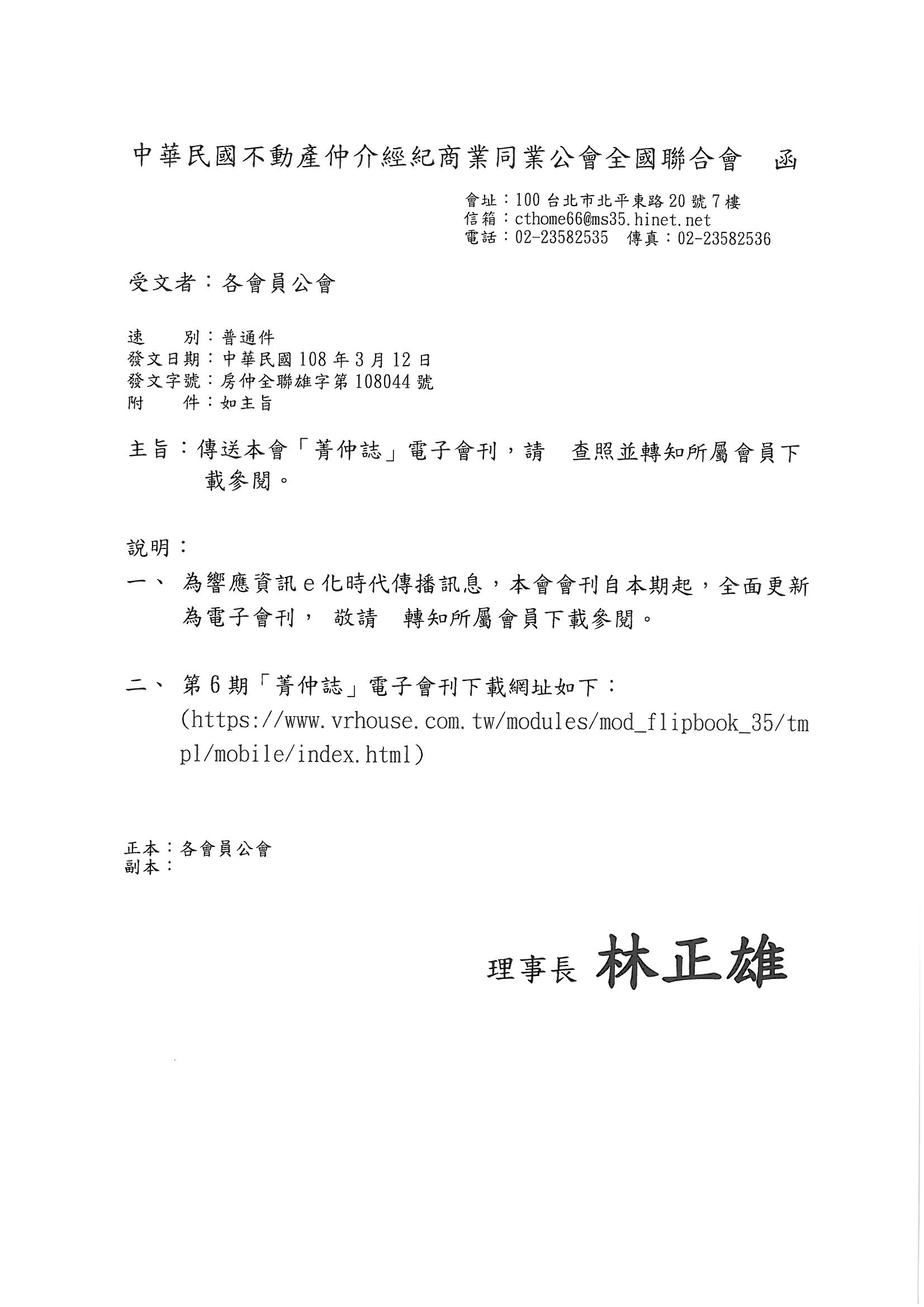 » 函轉全聯會「菁仲誌」電子會刊,敬請查照!