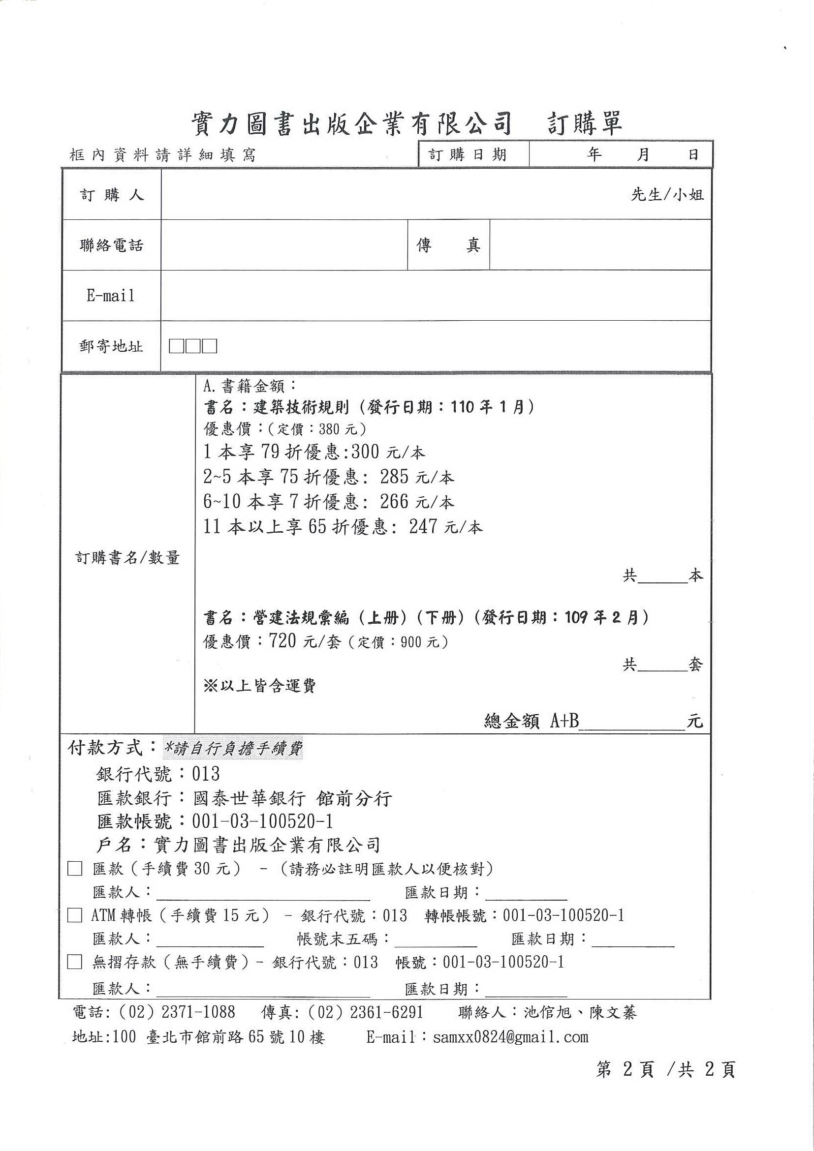 » 函轉社團法人中華建築文化交流協會關於編印之「建築技術規則」,擬於110年1月再版,本次將納入109年增修訂相關條文,敬請查照!