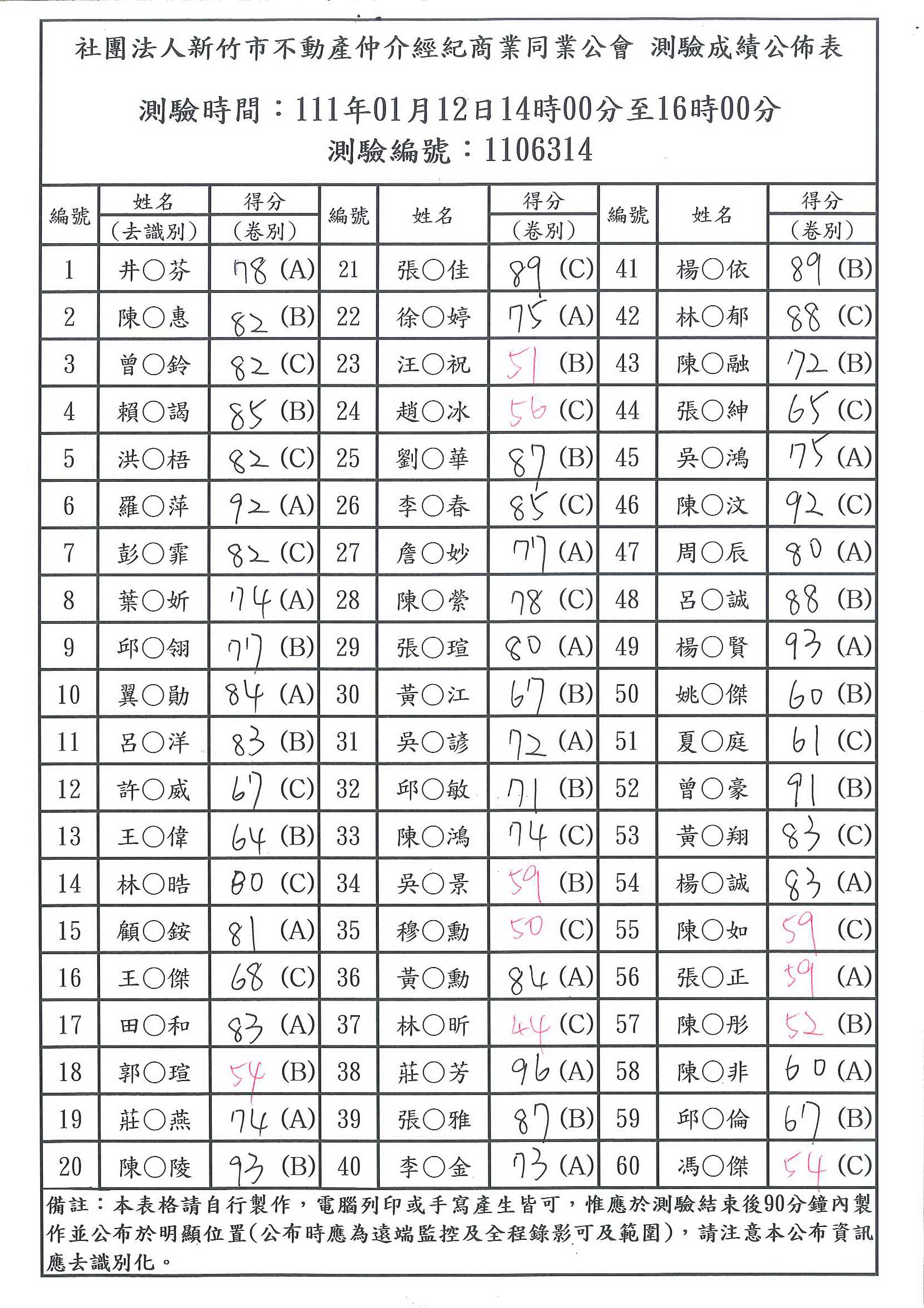 » 111年01月12日成績公布