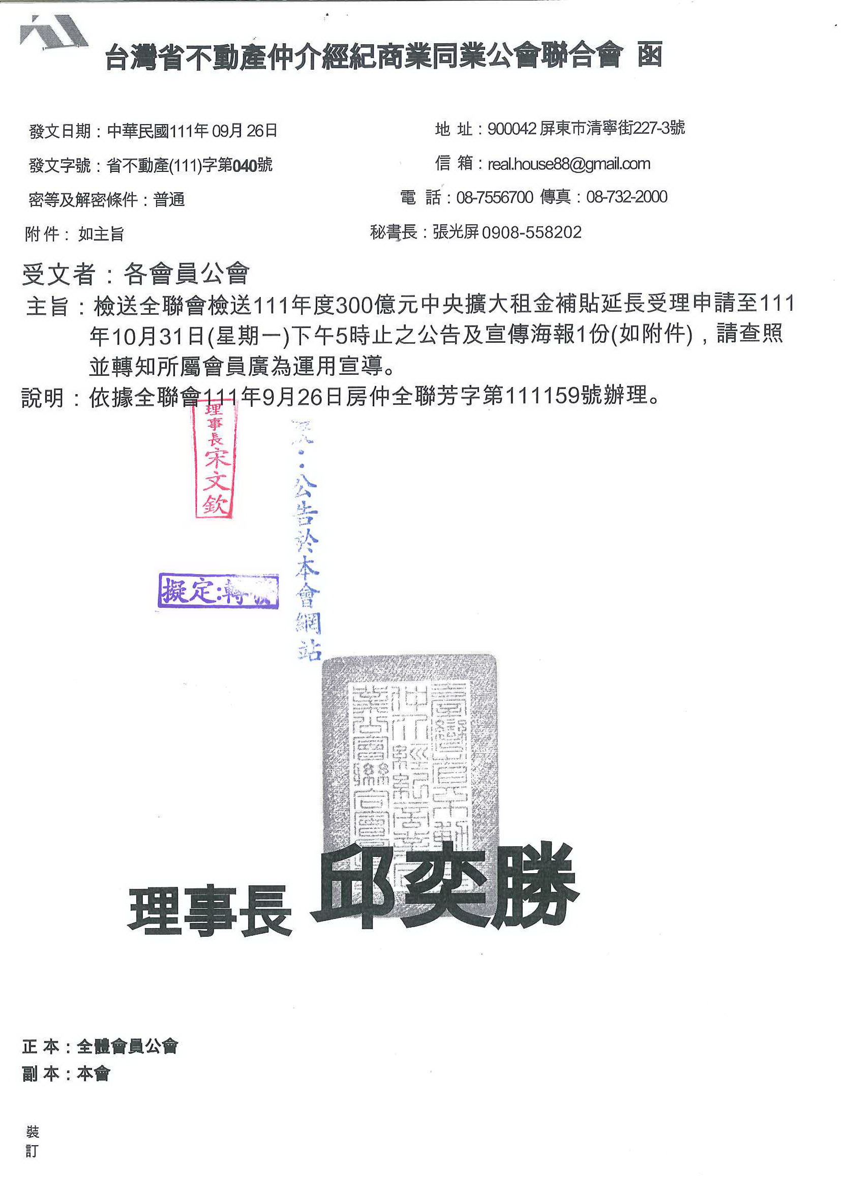 函轉省聯會檢送111年度300億元中央擴大租金補貼延長受理