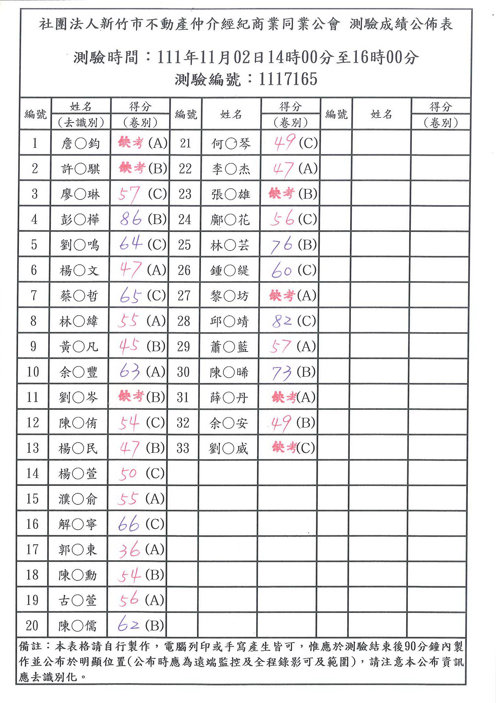 » 111年11月02日成績公布