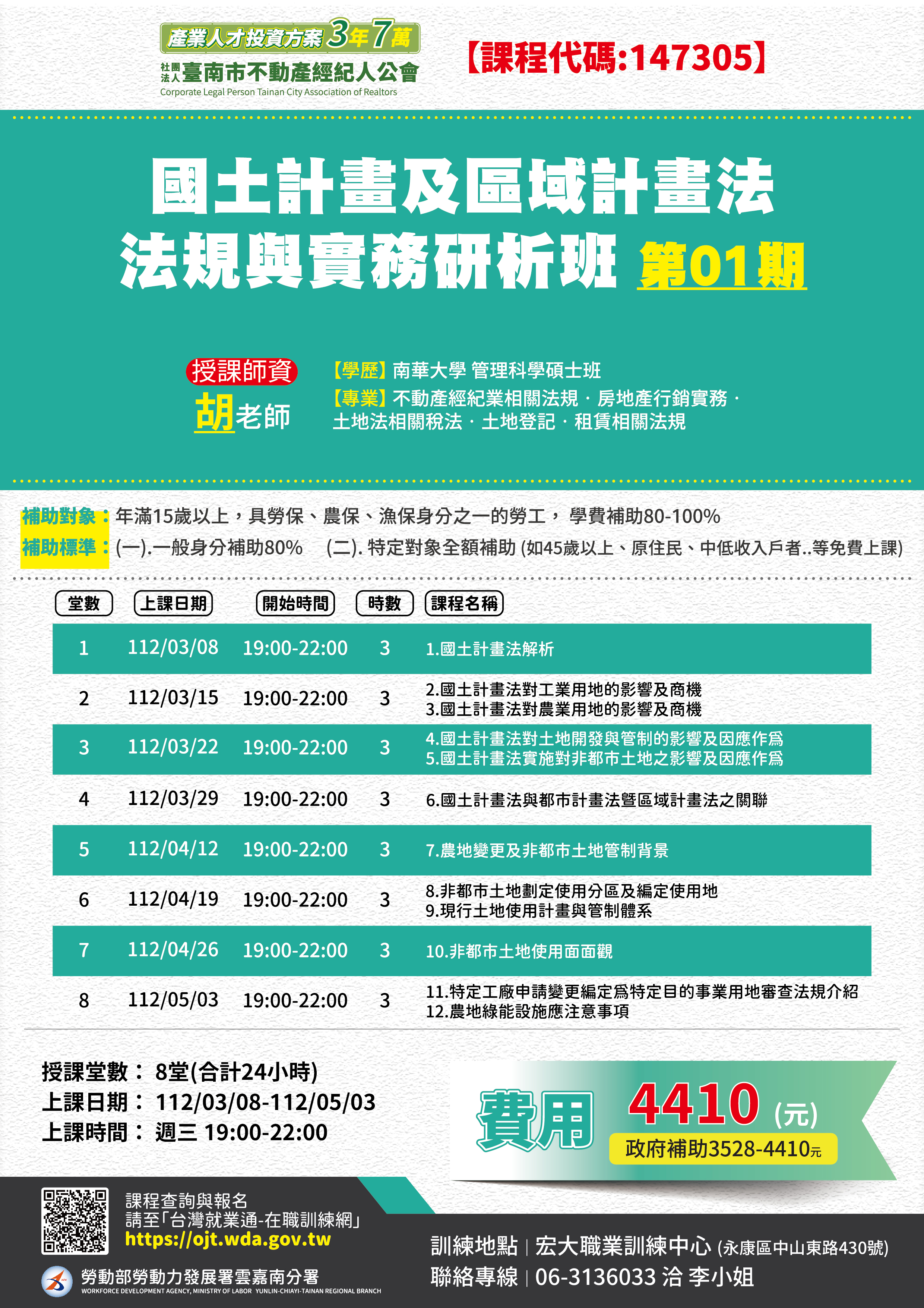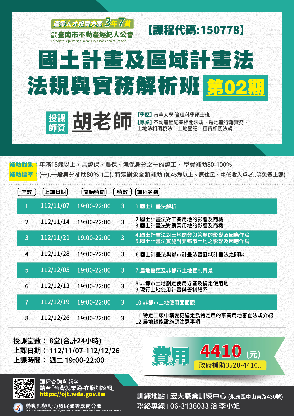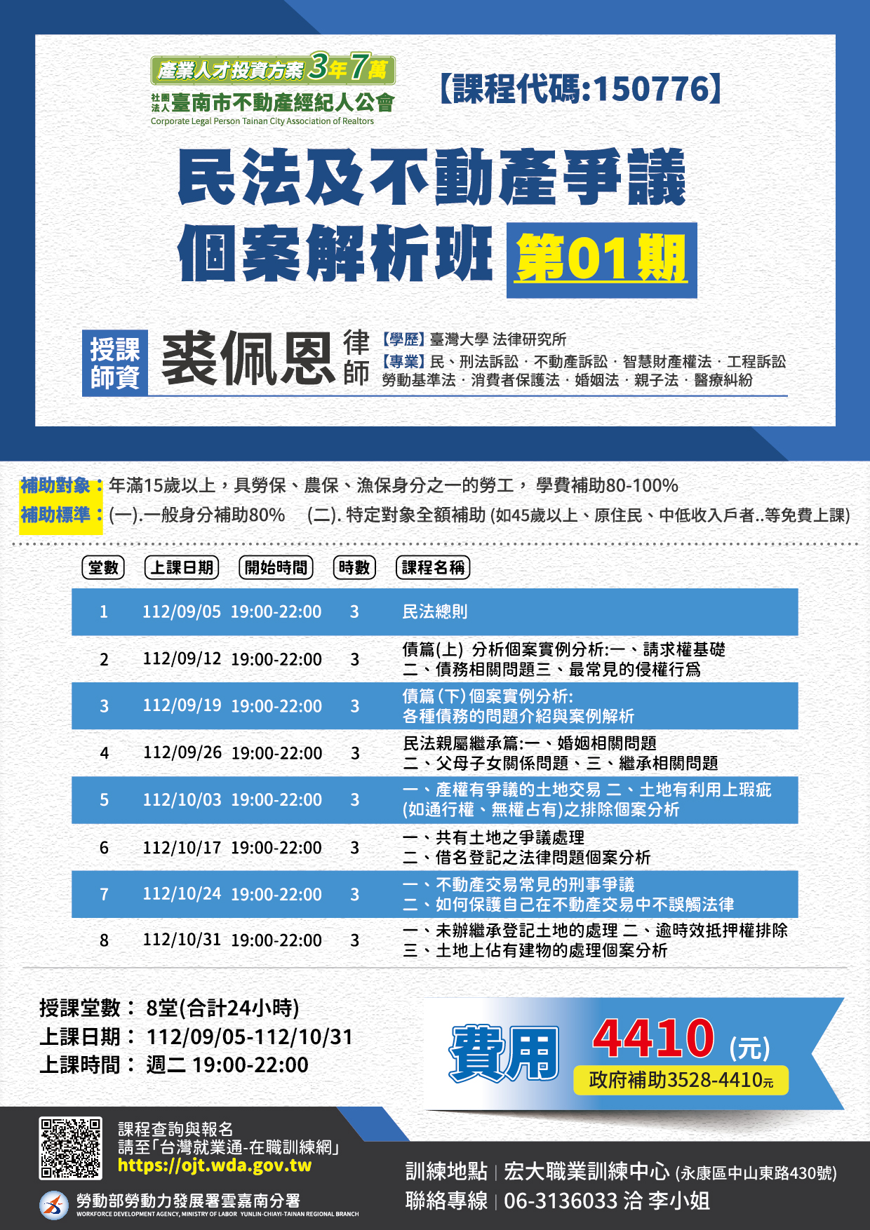 【社團法人臺南市不動產經紀人公會 開課資訊】 此班為本公會�...