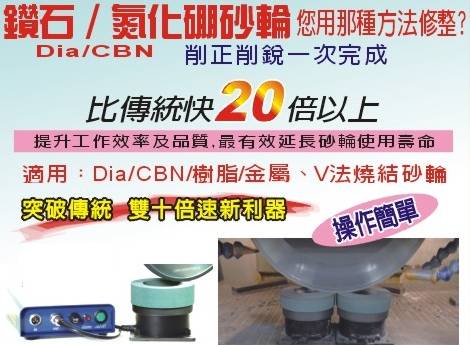 | 主要功能 | 樹脂/金屬/陶瓷結合劑平直形鑽石&CBN氮化硼砂輪削整,削正與削銳作業同時完成 |
