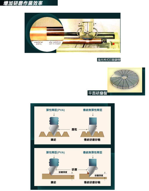 - 不產生划痕,使用周期長。拋光後工件清洗容易。