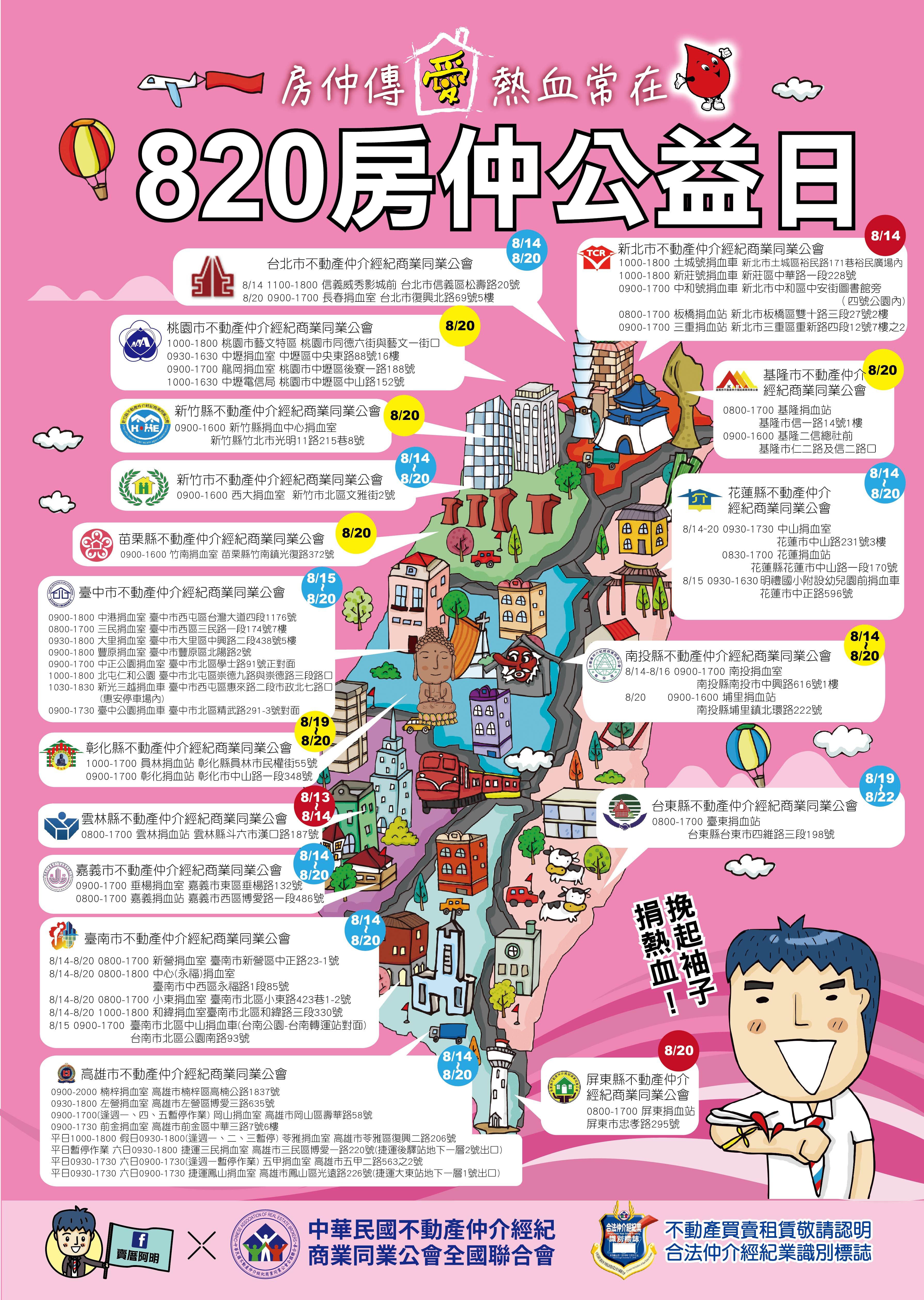 捐血時間及地點:請洽各縣市不動產仲介公會或見附圖
