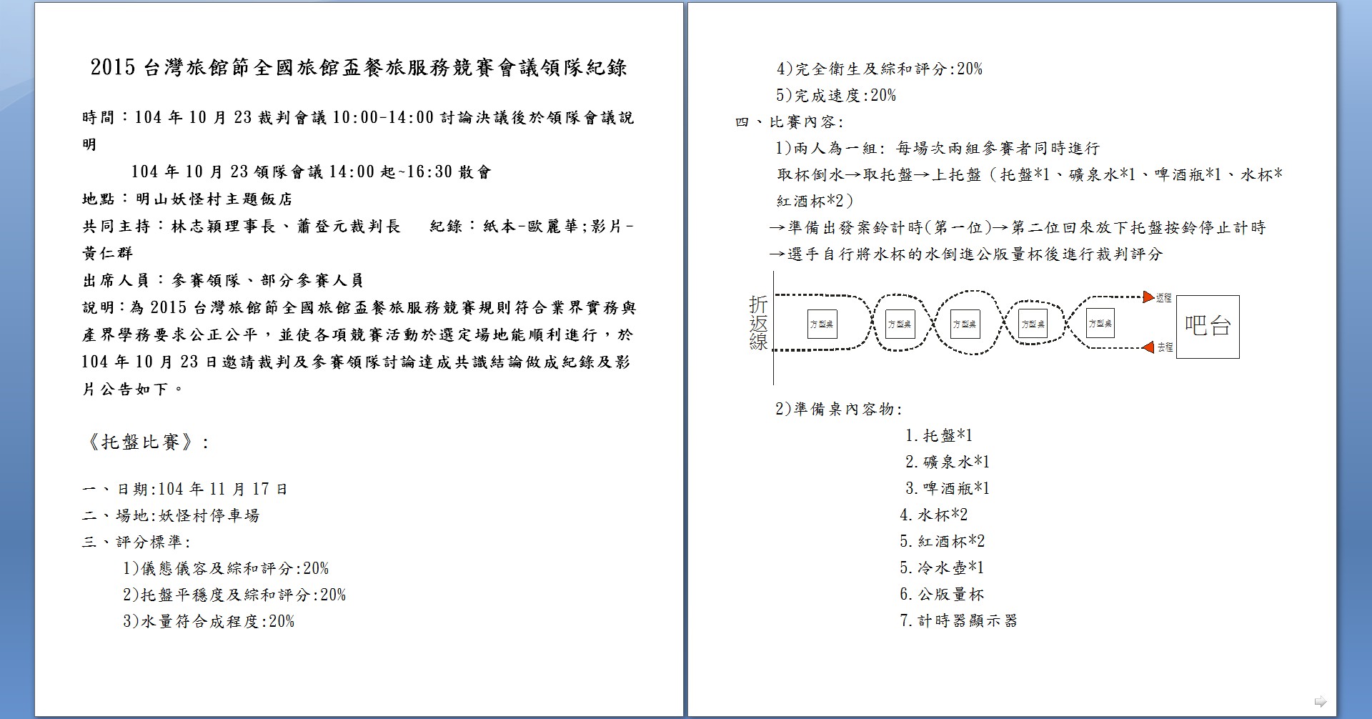 2015台灣旅館節全國旅館盃餐旅服務競賽會議領隊紀錄