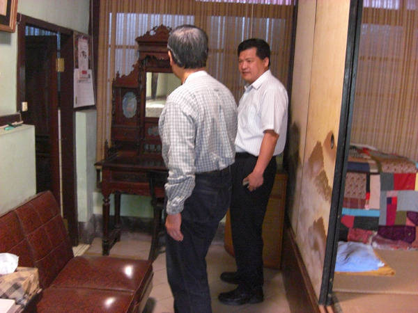 李理事長在黃義永老師的引領解說下參觀了8號房,房間寬敞典雅古時候的家具都依原貌擺放,呈現眼前有古色古香的化妝台、大同電扇、合室桌、棋桌、水果盤、密道…等,彷彿進入時空隧道來到50年代,忍不住拿起相機一一紀錄下來。