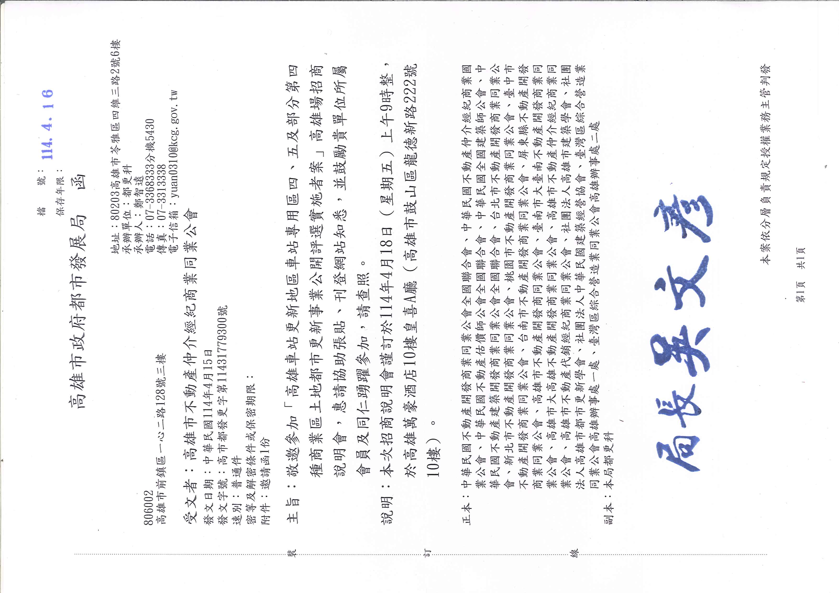發文組織:高雄市不動產仲介經紀商業同業公會