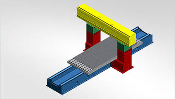 高剛性的機器本體與雙柱、橫樑結合成一穩固的門型架構。