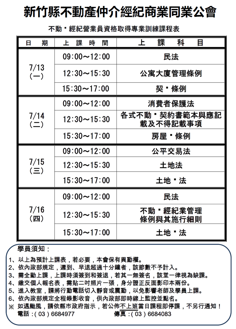 檔案下載((7月)營業員班(初訓)課表1.pdf)