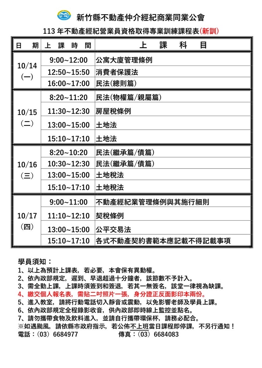 » 113年10月營業員新訓及11月營業員複訓課程表