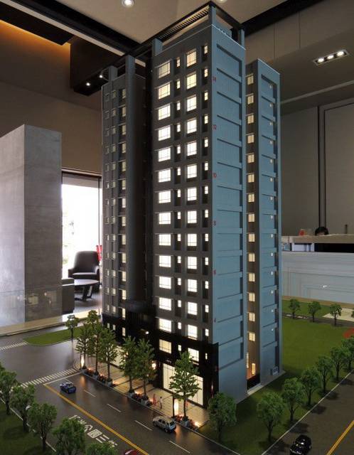 - 本建案地上14層,地下2層, 住52戶、店3戶,共55戶, 基地面基約316坪, 平面+機械車位共49個, 名家設計、格局方正, 高級建材、新貴入主, 公設比約29%。