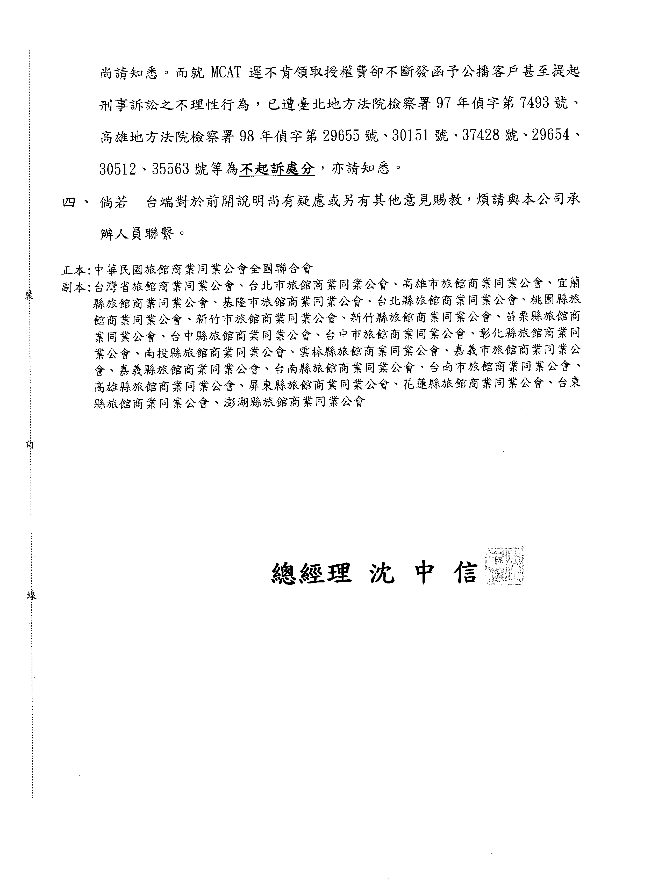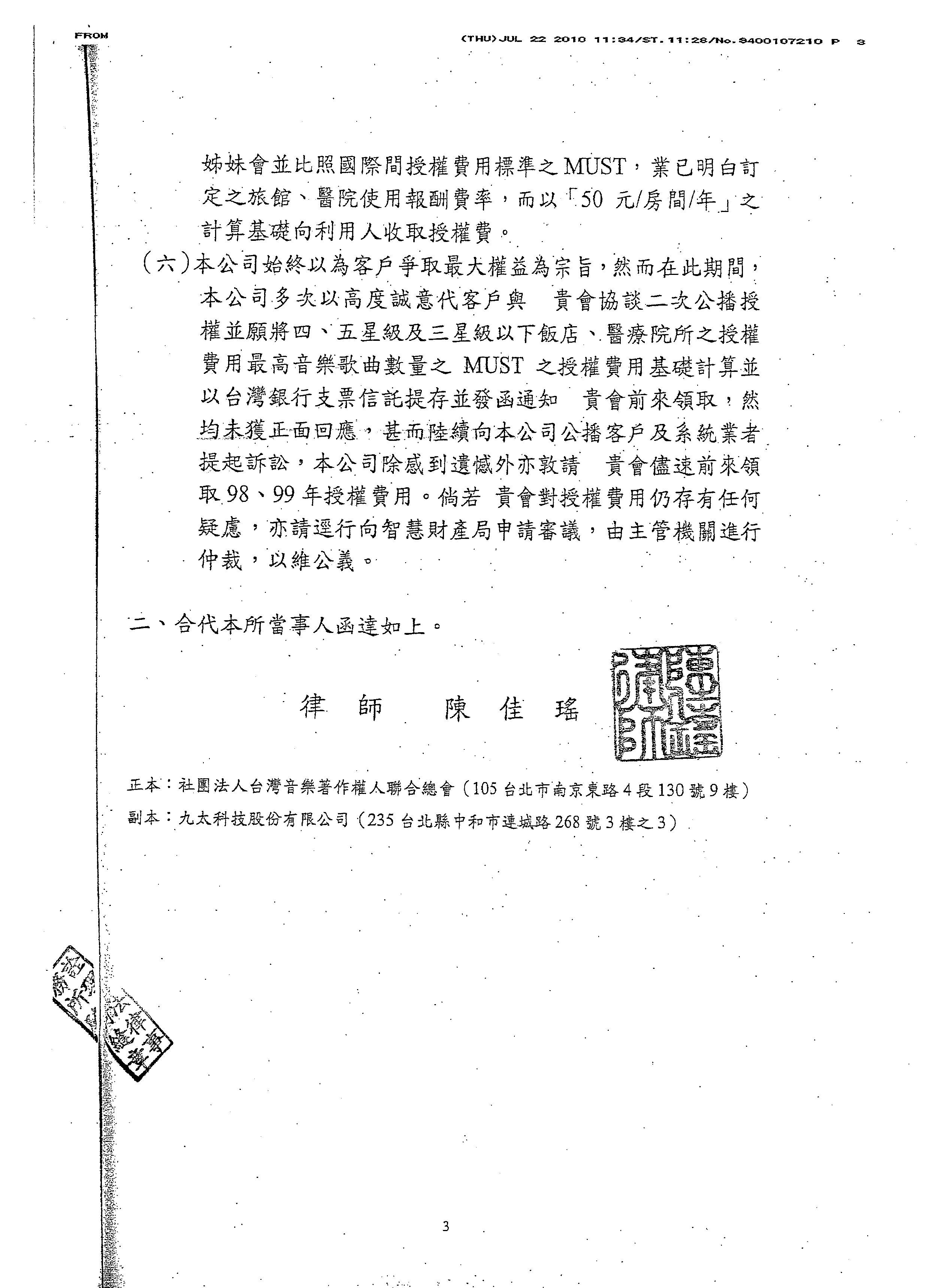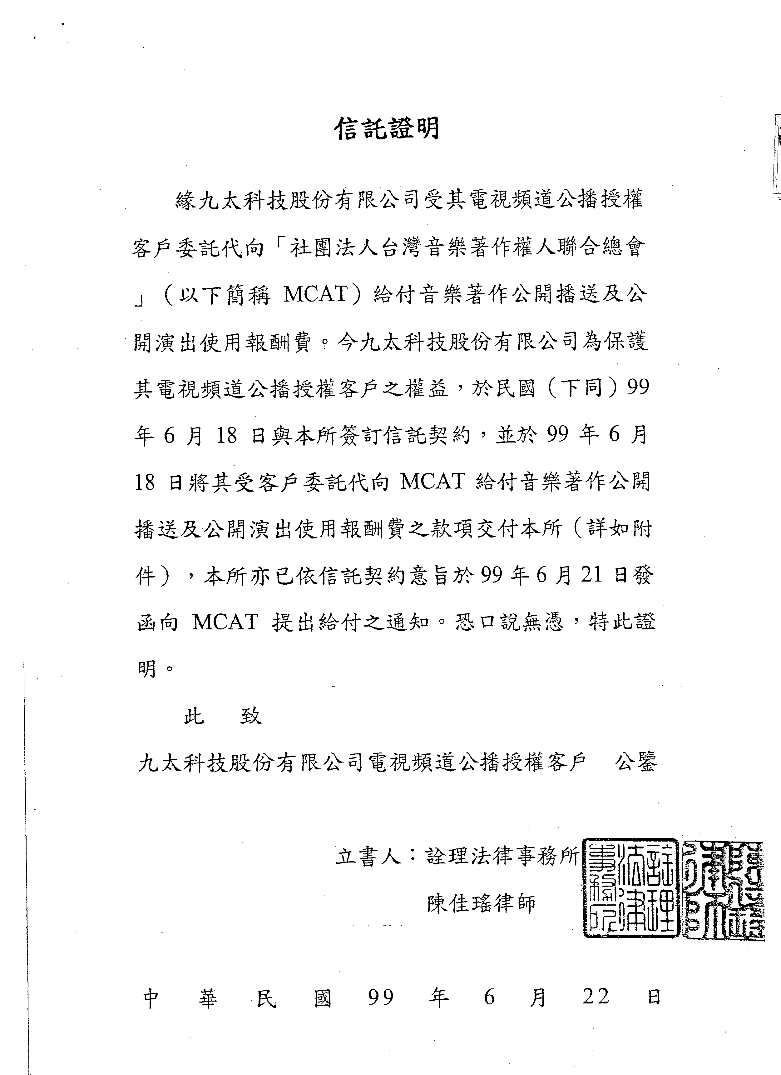 公會訊息 » 有關電視公播著作權法的事--台灣音樂著作權總會(MCAT) 請參閱九太科技公司來文